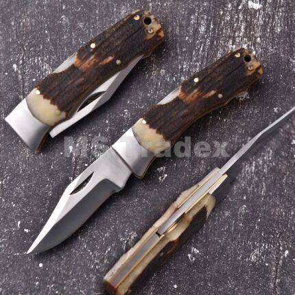 Handcrafted Stag Horn Folding Knife – Authentic Antler Handle with Brushed Stainless Bolsters