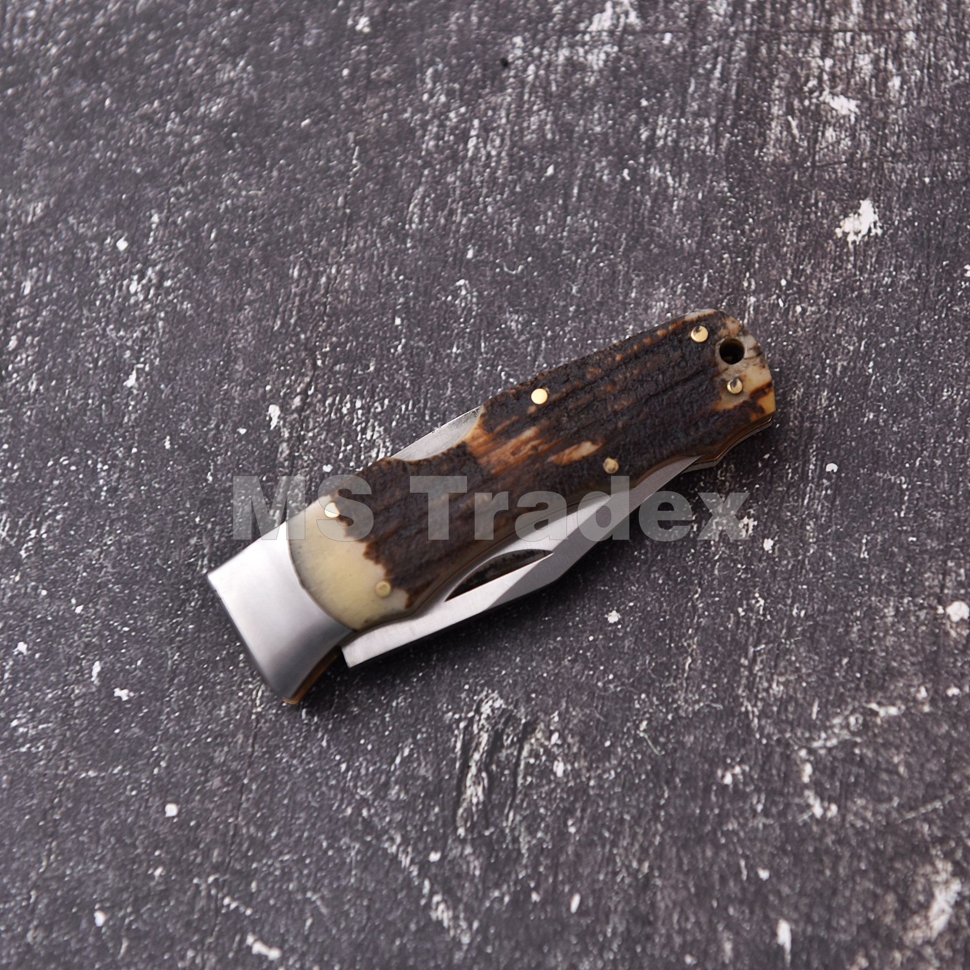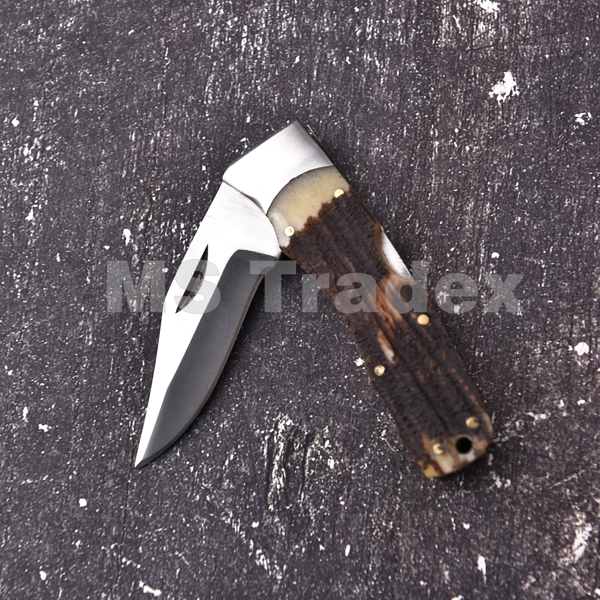 Handcrafted Stag Horn Folding Knife – Authentic Antler Handle with Brushed Stainless Bolsters
