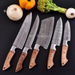 Be the first to review “Handmade 5-Piece Damascus Steel Chef Knife Set – Warm Walnut Wood Handle with Leather Sheath”
