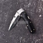 Handmade Classic Folding Knife – Polished Black Buffalo Horn Handle with Satin Bolsters
