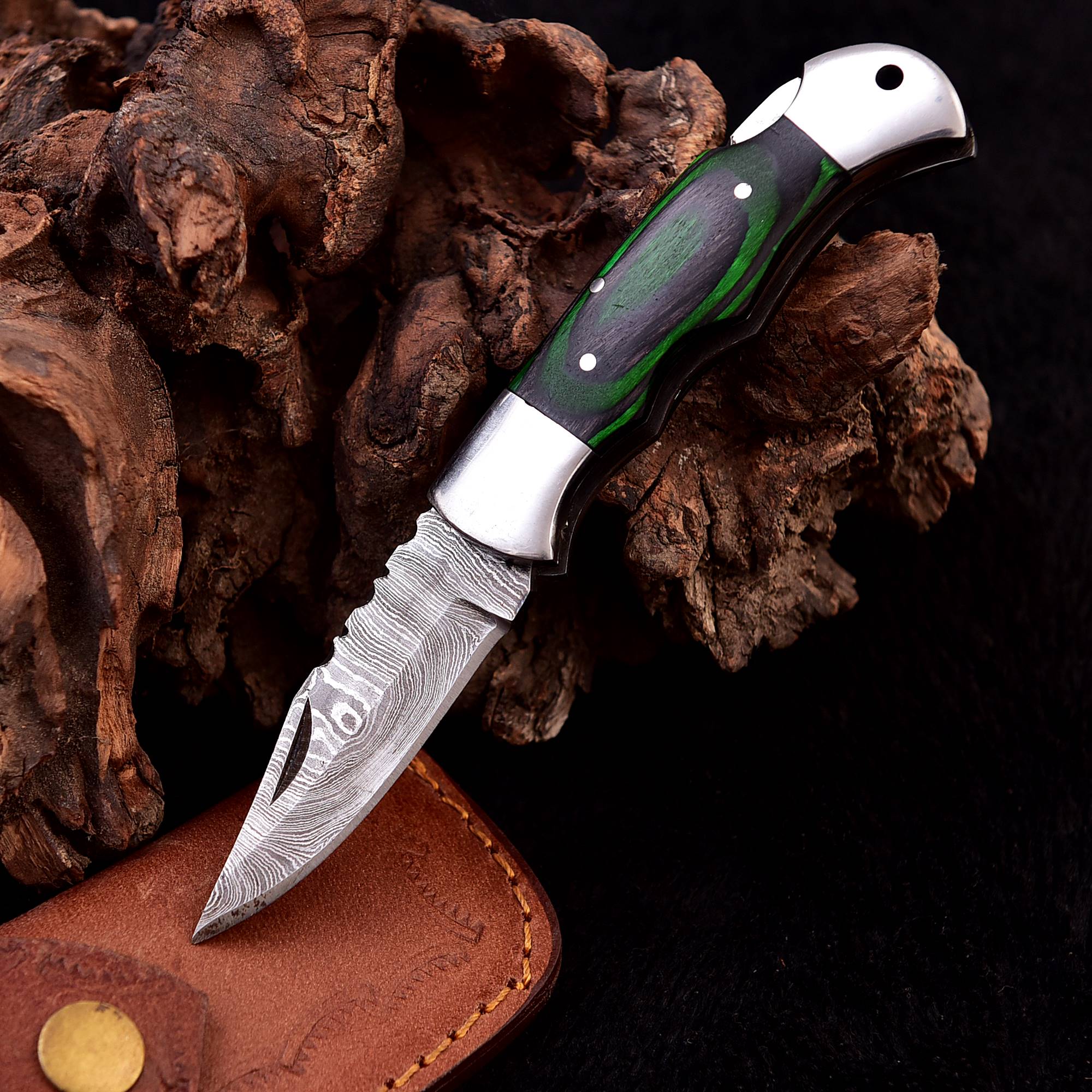 Handmade Damascus Folding Pocket Knife