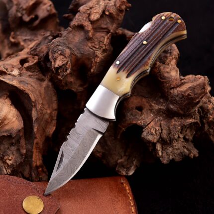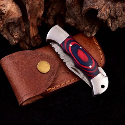 This handcrafted Pocket Folding Knife is one-of-a-kind gift that is sure to be treasured for years to come. The blade is made of high-quality Damascus steel, which is known for its strength, durability, and unique appearance