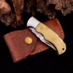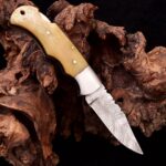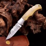 Handmade Damascus Folding Pocket Knife Camel Bone Handle