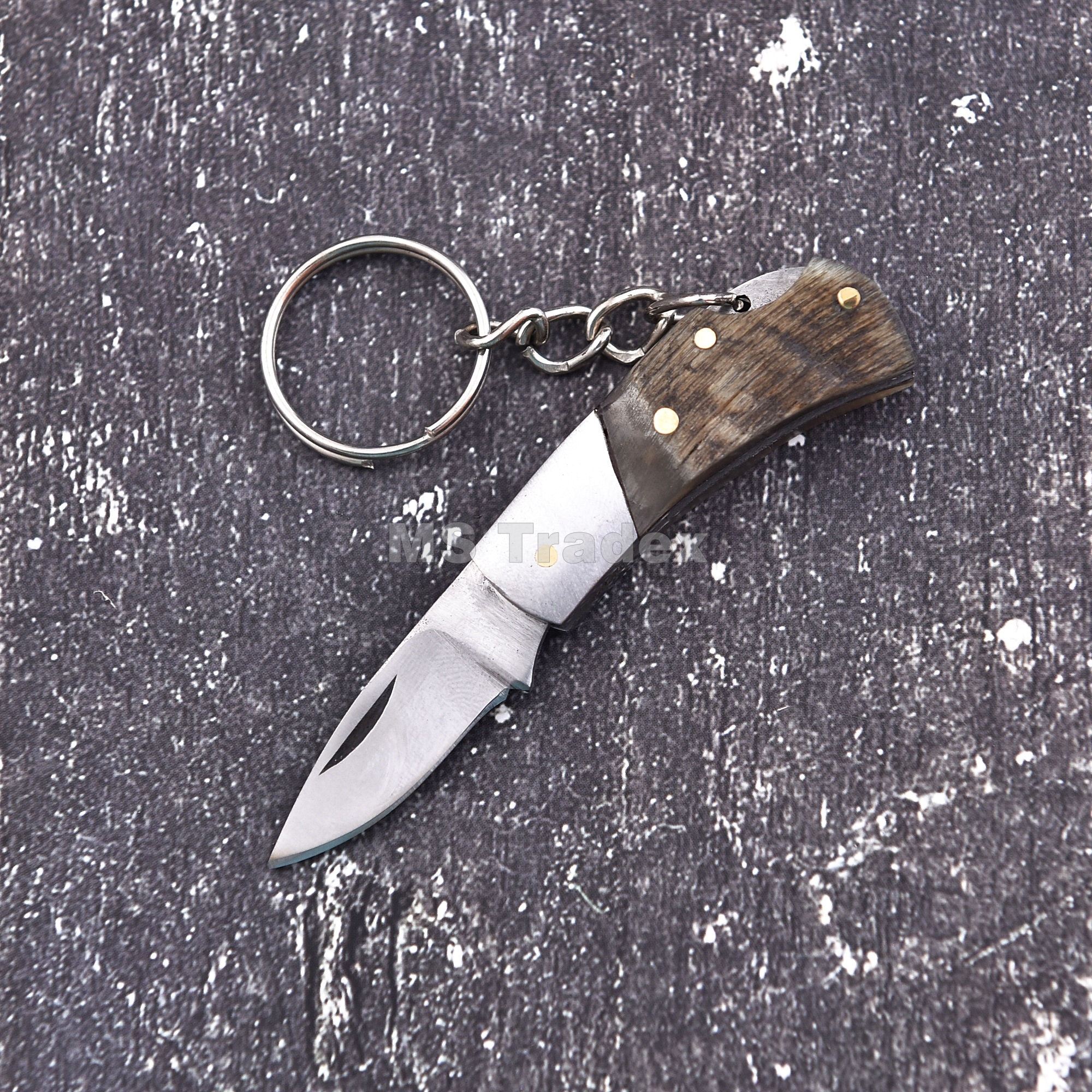 Handmade Miniature Folding Knife Keychain – Authentic Textured Stag Horn Handle with Stainless Bolster