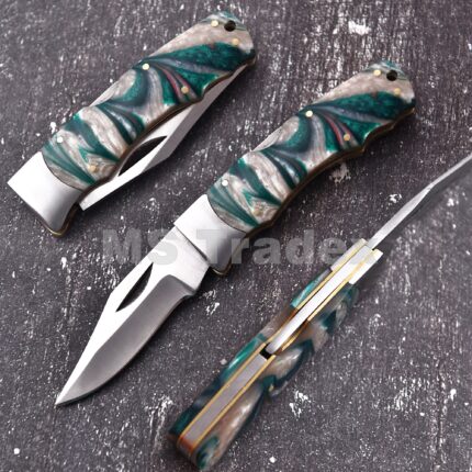 Classic Elegance in a Micro-Scale For those who prefer a clean, minimalist look, this “Midnight Black” miniature folder is the perfect choice. Handcrafted with precision, it features a high-gloss black handle that provides a striking “tuxedo” aesthetic when paired with its golden brass pins and silver stainless bolster.