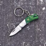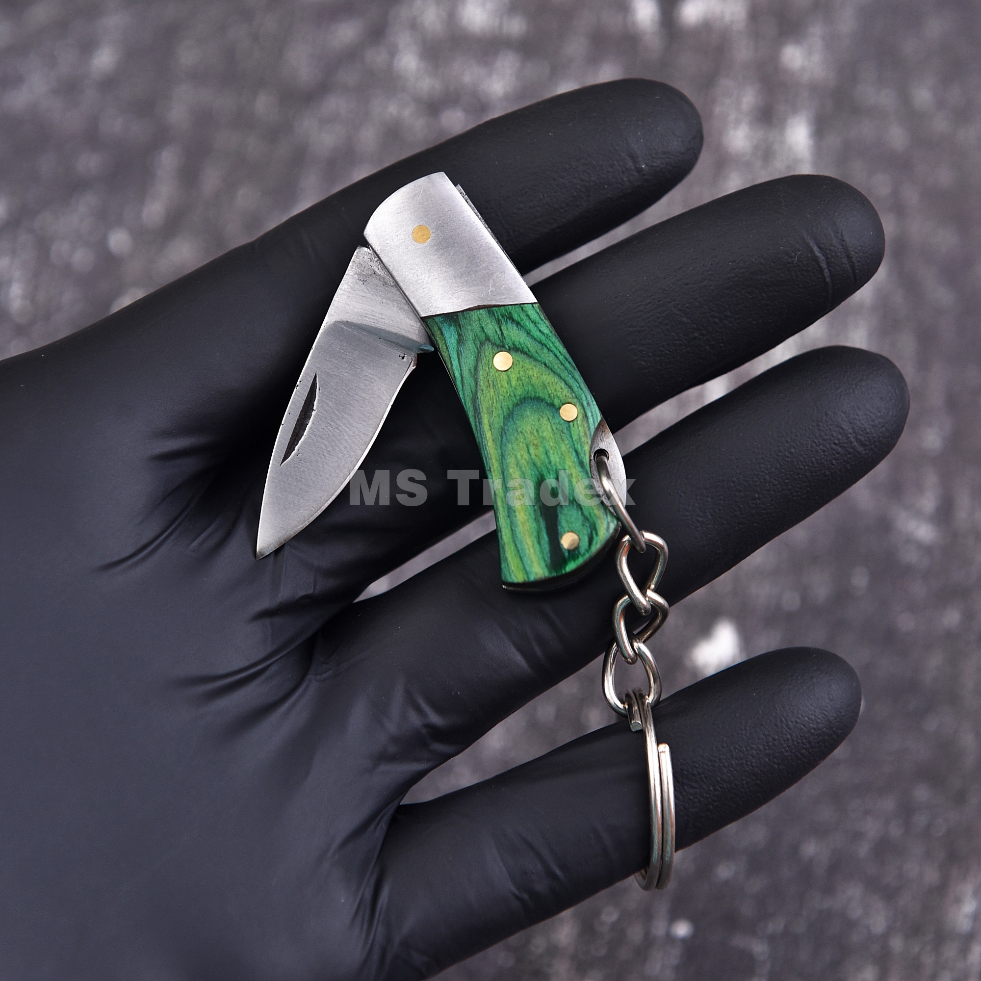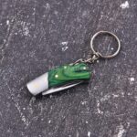 Handmade Miniature Folding Knife Keychain – Vibrant Green Pakkawood Handle with Stainless Bolster