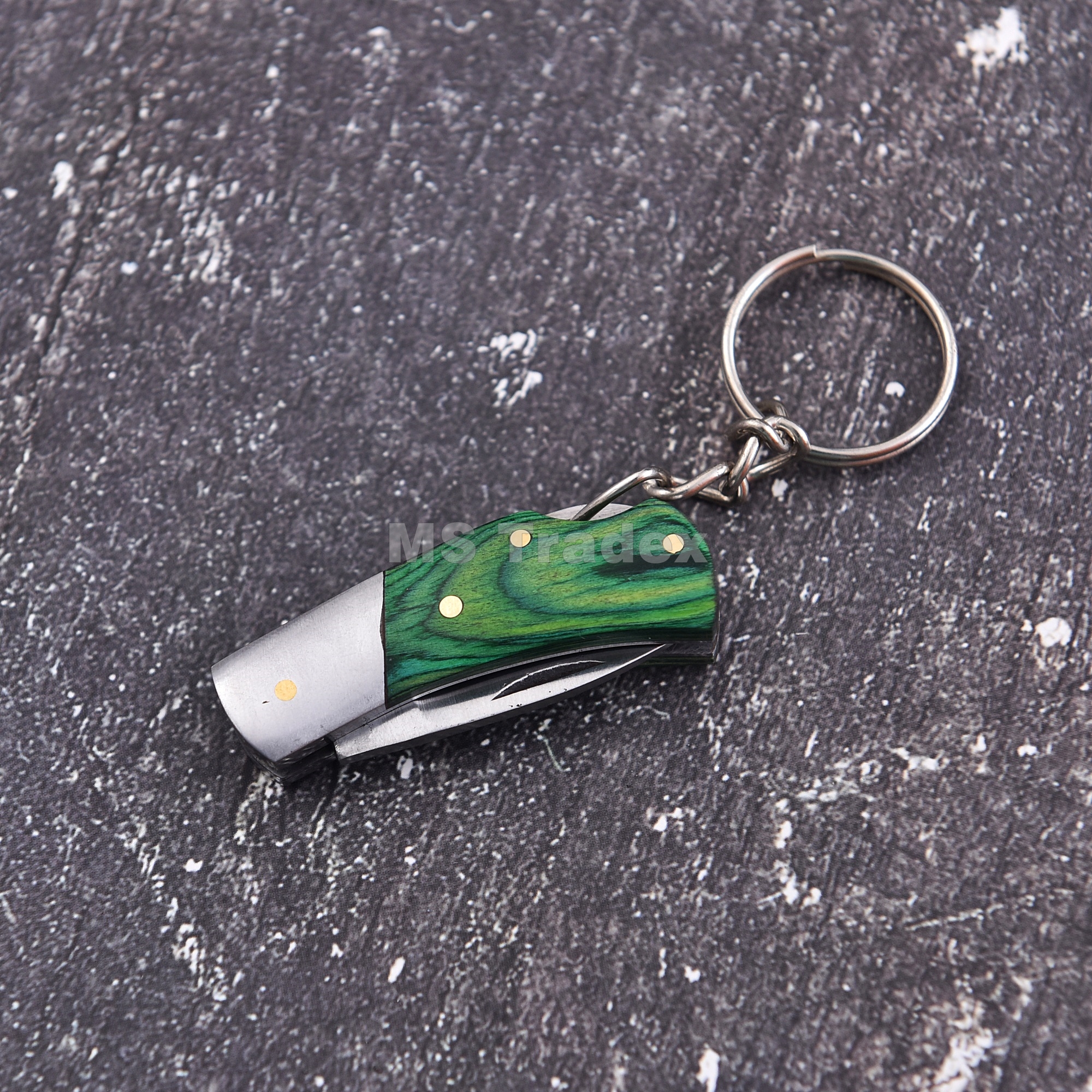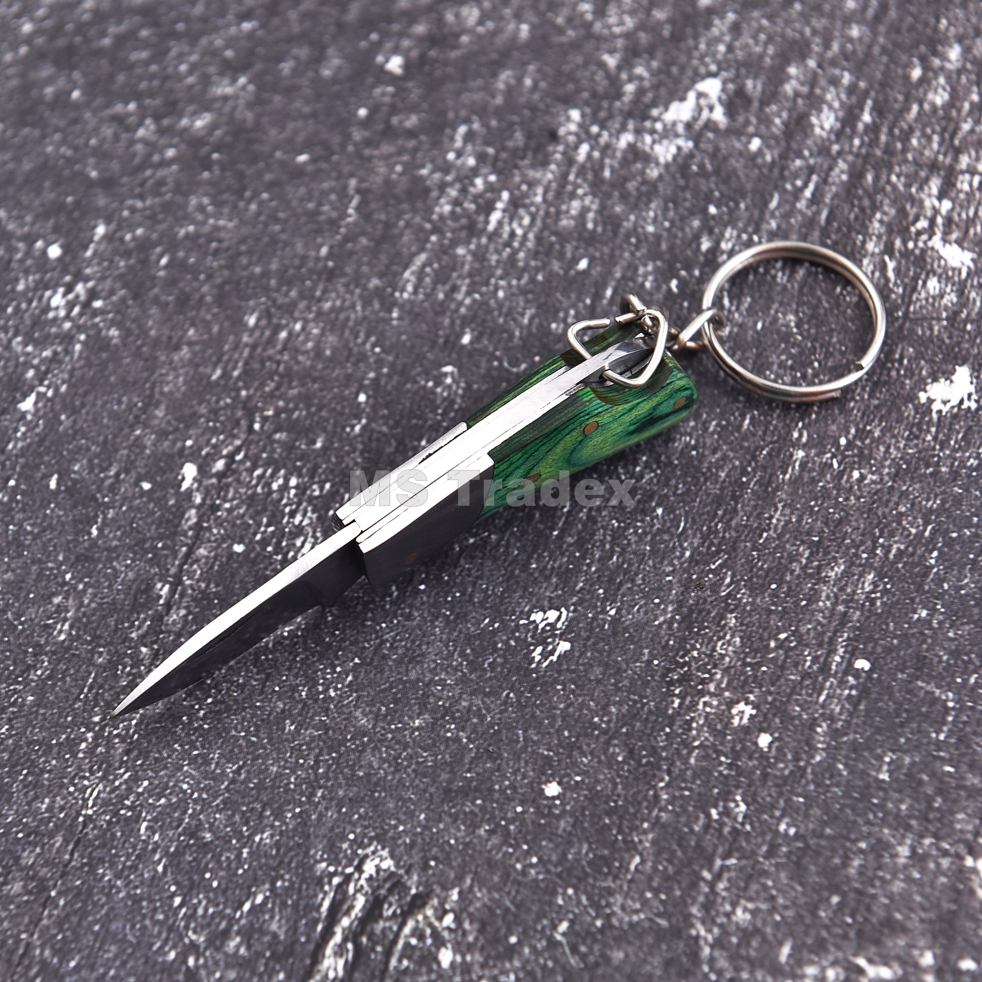 A compact fusion of artisan skill and portability. This handmade miniature folding knife features a striking green-layered pakkawood handle and a functional stainless steel blade, complete with a durable keychain for stylish everyday carry.